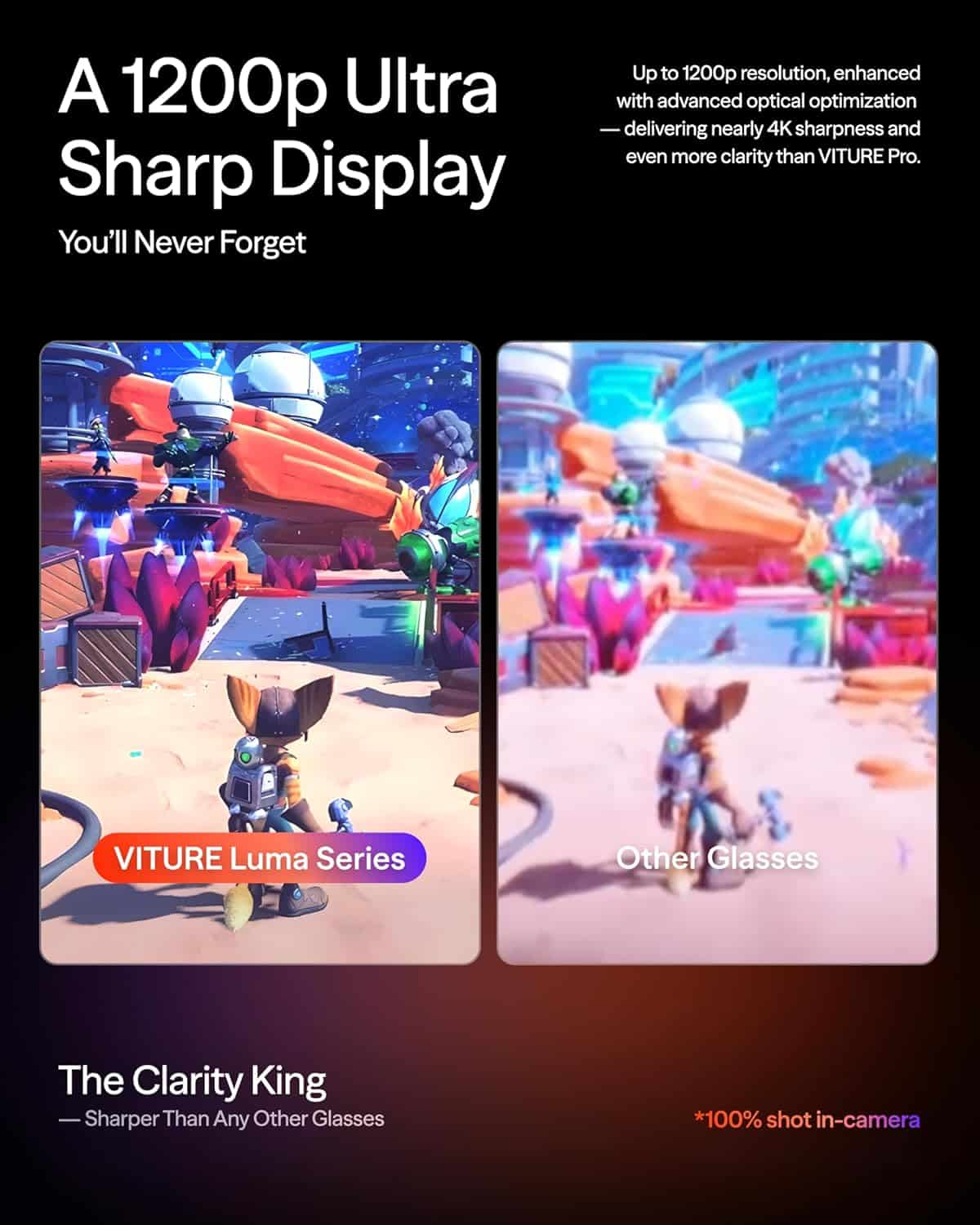 VITURE Luma Ultra XR siūlo įspūdingą 1200p itin ryškų vaizdą, kuris yra dar aštresnis nei VITURE Pro. Virtualus ekranas iki 152 colių sukuria jausmą, tarsi žiūrėtumėte 4K lygio turinį – tekstas ypač aiškus, detalės tikslios, o vaizdas natūralus.